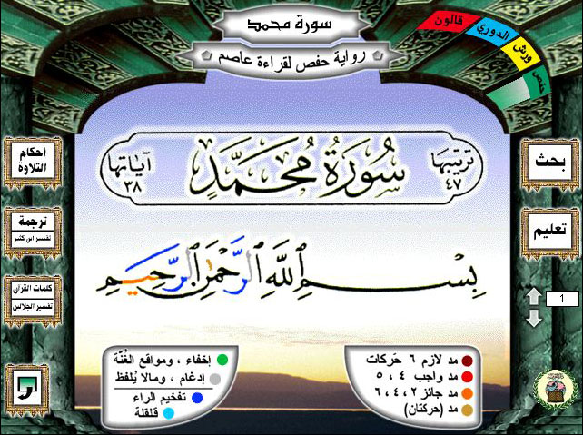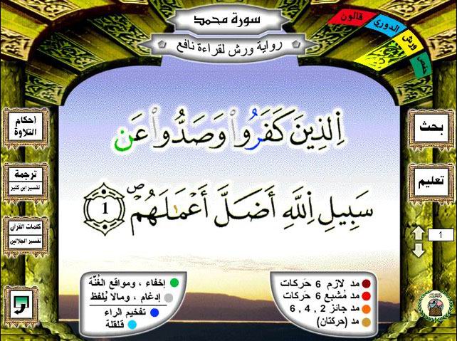 هذه روابط للمصحف المرمز بالألوان بأربع قراءات صوتية مختلفة ( حفص - ورش -