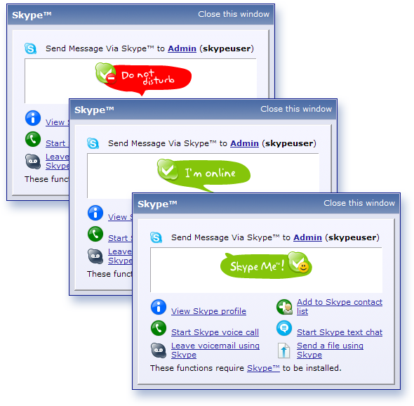 نظام SkypeWeb يسمح بظهور حالة الاتصال ببرنامج Skype على صفحات الفيبوليتن بطريقة جميلة.