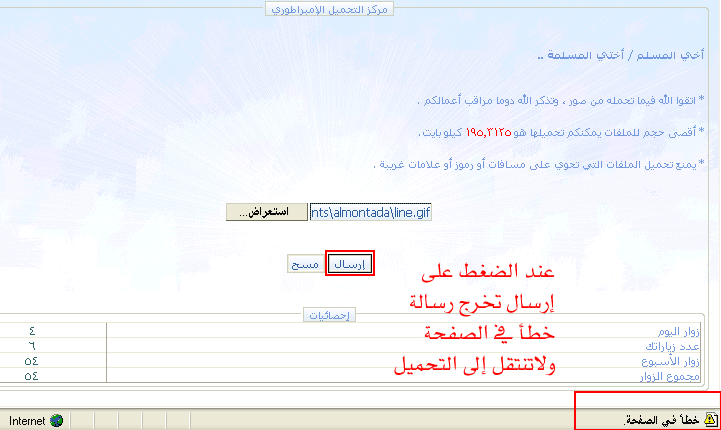 عند الاستعراض بغية تحميل صورة يعطيني رسالة خطأ في الصفحة ولقد أرفقت لك صورة ضمن المرفقات. أمل أن أجد حلاً سريعاً.