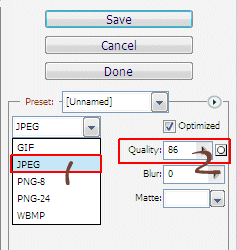 اختاري File ثم Save for web ثم تختاري صيغة الحفظ ,,, بعدها Qality