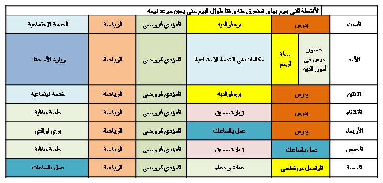 وهو عمل جدول من السبت إلى الجمعة ببرنامجك اليومي